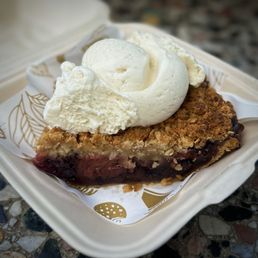 This place has amazing reviews for a reason. Great little place in downtown Healdsburg with multiple ice cream shops around but this is probably the best one in the area. The service was great and had great recommendations. Onto the pie a la mode! The pies were delicious. The Dutch Apple crumble had the right tart into it and not too sweet. The crust on that pie was just right and not too soggy, the strawberry blueberry pie was decadent but perhaps just a little too sweet, but everyone has a different palate! But all around delicious!